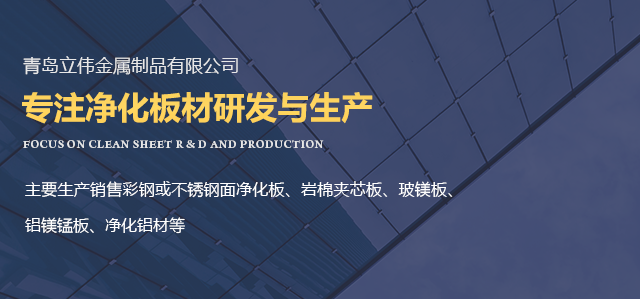 青島立偉金屬制品有限公司是集設計、生產、安裝、外貿于一體的專業化公司,主要生產銷售彩鋼或不銹鋼面凈化板、巖棉夾芯板、玻鎂板、鋁鎂錳板、凈化鋁材等,產品銷往全國各地及美國、印度尼西亞、以色列、澳大利亞等十多個國家。